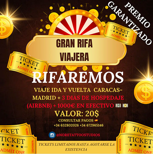Rifa viajera, Caracas-Madrid + hospedaje & mil Euros